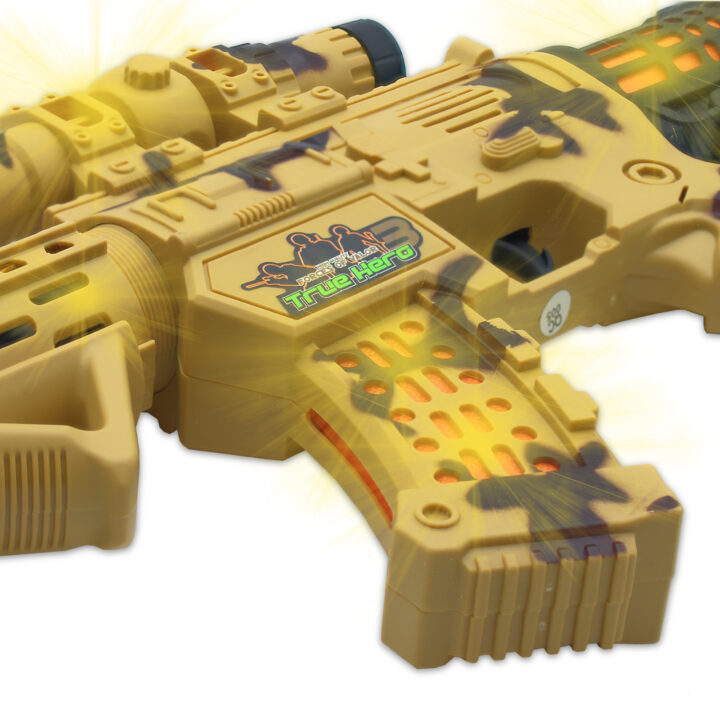 Karabin elektryczny pustynny to wyjątkowa zabawka dla dzieci, które kochają przygody i dynamiczną zabawę. Wykonany z wysokiej jakości materiałów, jest trwały, bezpieczny i idealny do intensywnego użytkowania. Jego realistyczny wygląd, wzbogacony o efekty dźwiękowe i świetlne, sprawia, że dzieci mogą poczuć się jak prawdziwi bohaterowie na polu bitwy.