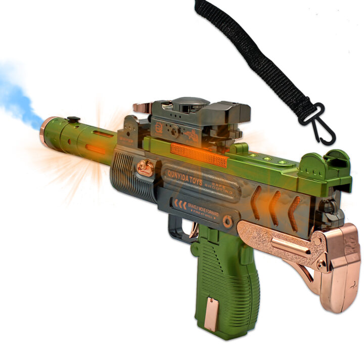 Zielony pistolet dla dzieci z parą wodną i efektami świetlnymi