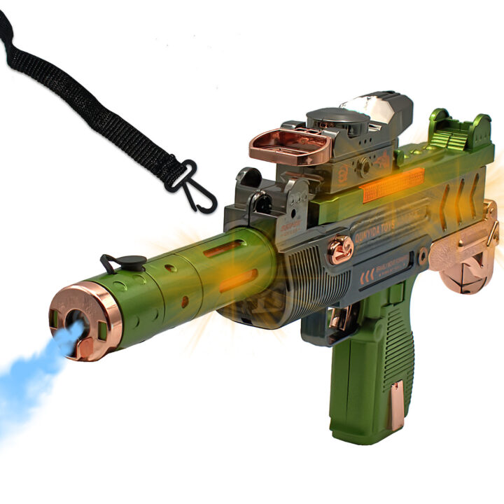 Zielony pistolet to interaktywna zabawka, która dostarcza dziecku niezapomnianych wrażeń. W trakcie strzelania z lufy wydobywa się delikatna para wodna, co tworzy realistyczny efekt dymu. Efekty świetlne i dźwiękowe pobudzają wyobraźnię i sprawiają, że zabawa staje się jeszcze ciekawsza.