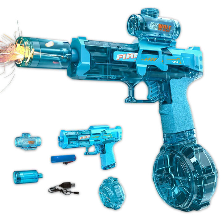 Ten pistolet na wodę to idealna zabawka na lato dla dzieci i dorosłych. Nowoczesny wygląd oraz wbudowane efekty świetlne sprawiają, że zabawa jest jeszcze ciekawsza, również po zmroku.